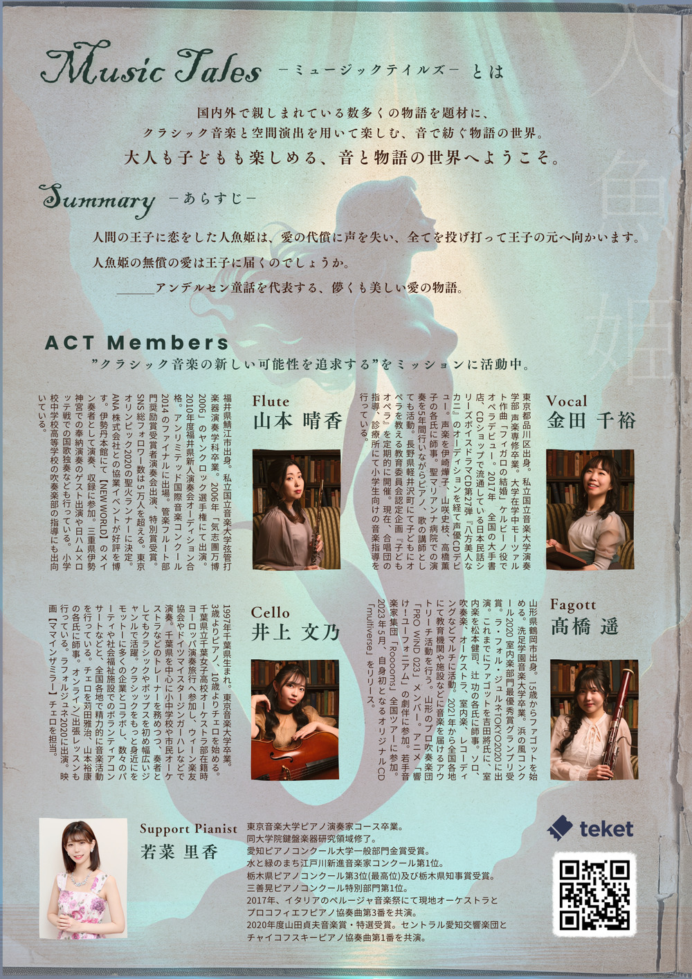 【出演】山本晴香/フルート、井上文乃/チェロ、髙橋遥/ファゴット、金田千裕/声楽、若菜里香/ピアノ