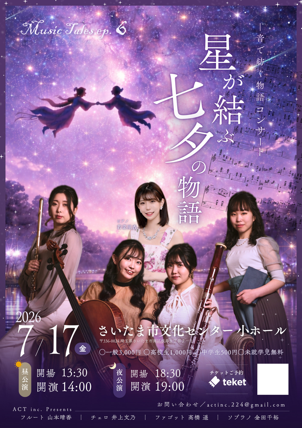 『七夕』の物語を題材に、クラシックの名曲の数々をお届けします。大人も子どもも楽しめる、音と物語の世界へ。