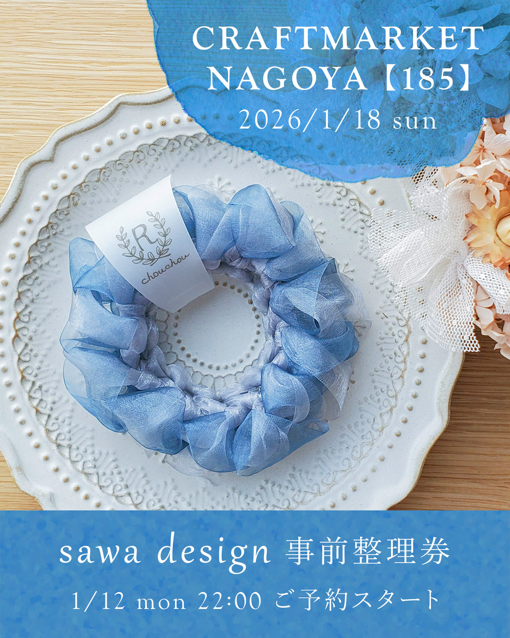 sawa designの整理券のご予約・クラフトマーケットのご入場ともに無料となります。