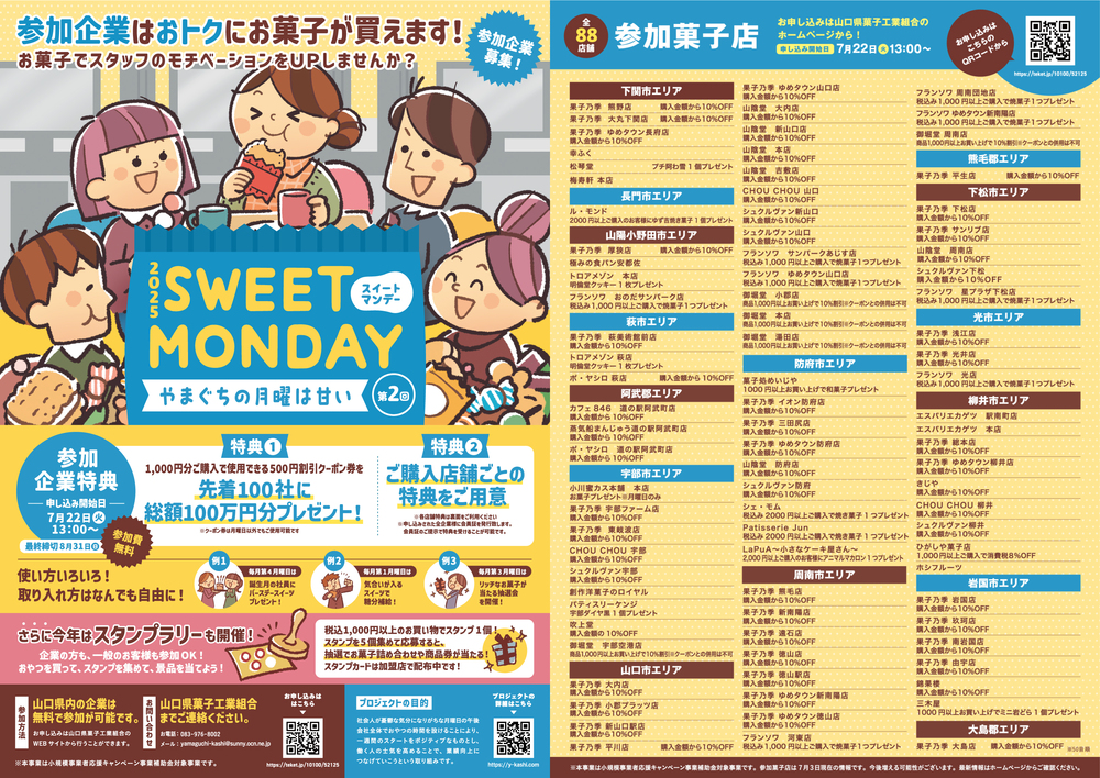 社会人が憂鬱な気分になりがちな月曜日の午後、会社全体でおやつの時間を設けることにより、1週間のスタートをポジティブなものとし、働く人の士気を高めることで、ゆくゆくは業績向上につなげていこうという取り組みです。
