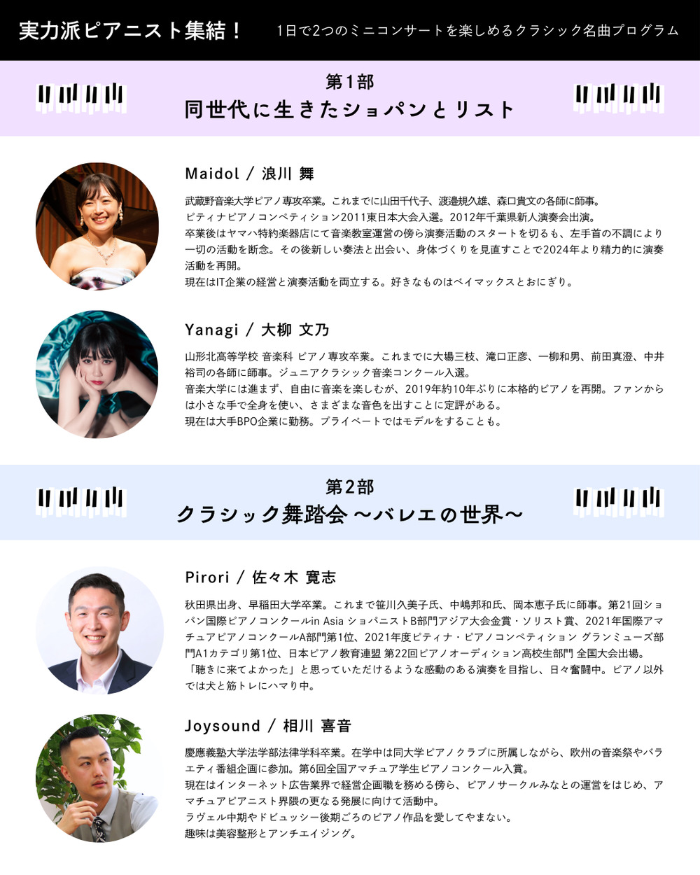 ・演奏者は実力派ぞろい!しかも会社員とピアニストを両立!?