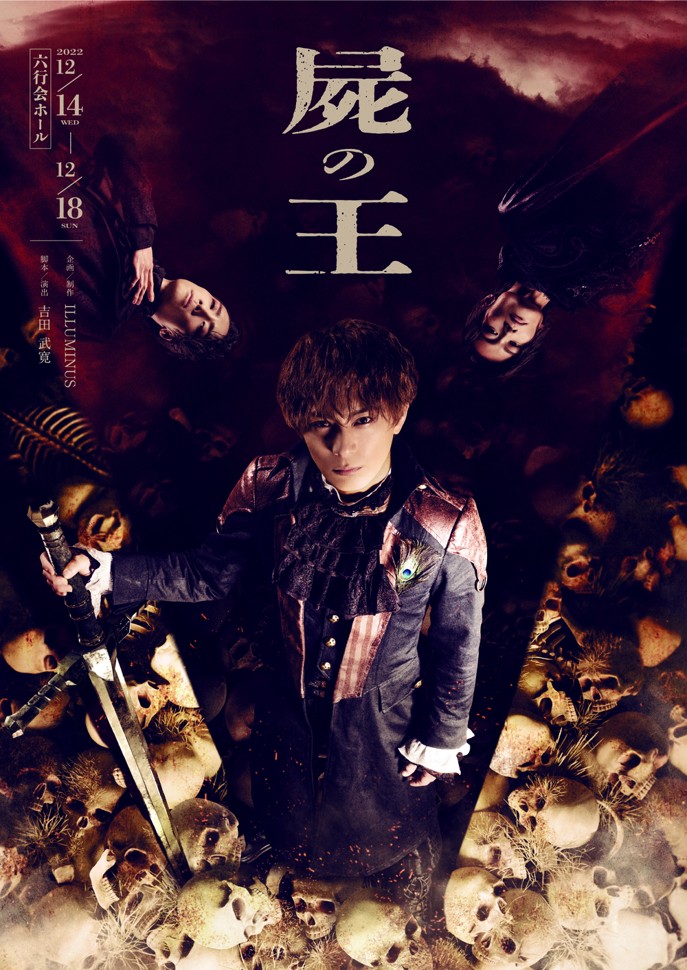 2019年、「誰も救われない、誰も報われない物語」をキャッチコピーに、血塗られた実在の悲劇をモチーフにして女優のみで描いた女王シリーズ。三年半の間に5作品、7公演が上演されILLUMINUSの人気シリーズとなりました。その男性俳優版として、2020年10 月に始まった”王ステ”シリーズの第3弾「屍の王」2022年12月に上演します。
