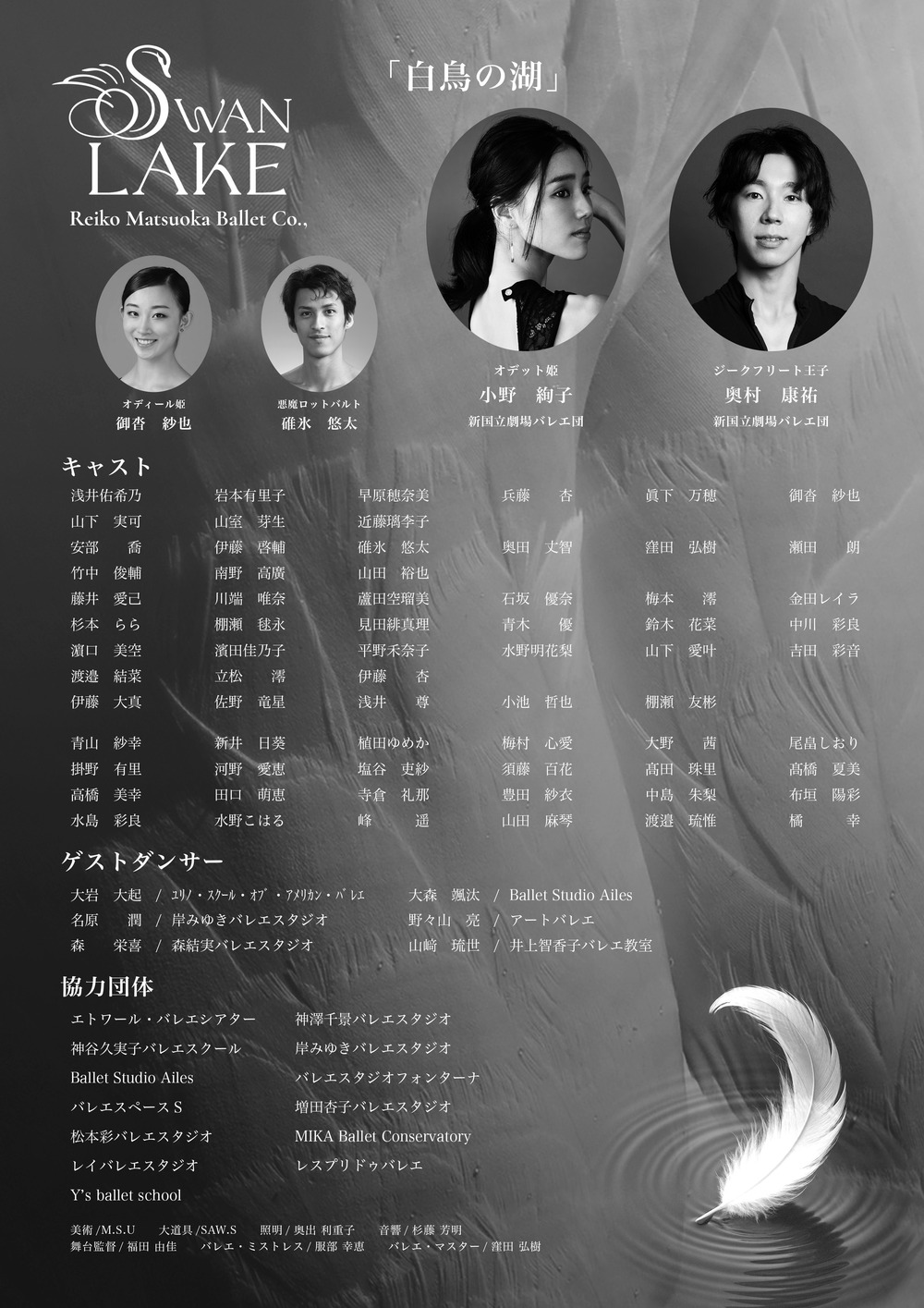 主演には新国立劇場バレエ団のプリンシパル、小野絢子と奥村康祐を迎え、チャイコフスキー不朽の名作『白鳥の湖』全四幕を上演します。