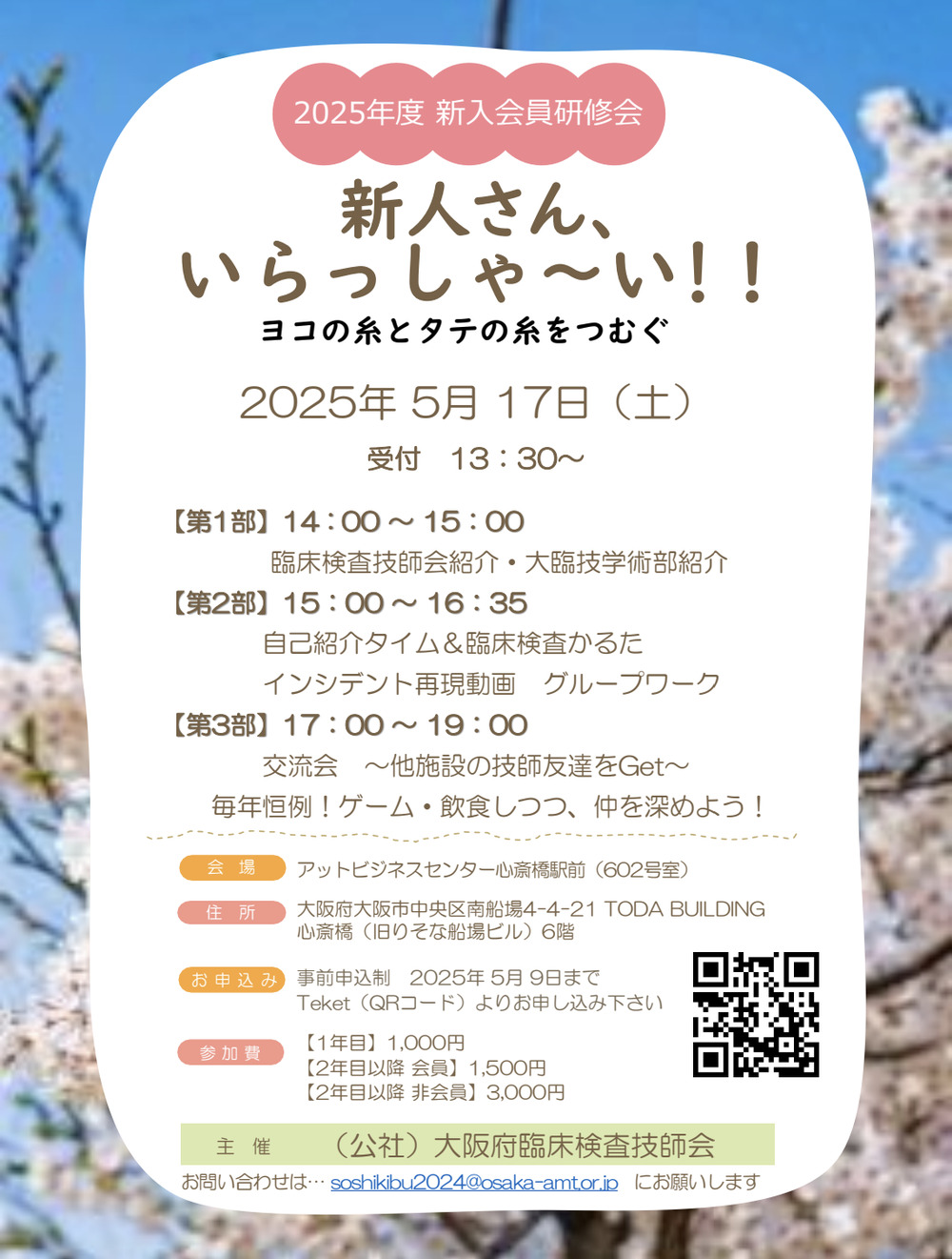 その他のお問い合わせ先:大阪府臨床検査技師会(組織部) soshikibu2024@osaka-amt.or.jp