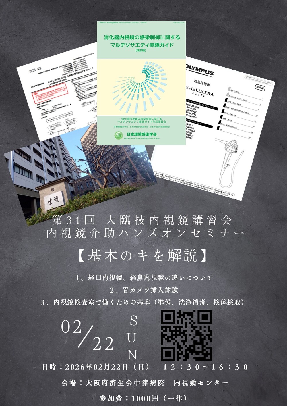 内視鏡洗浄や生検介助などの基礎を中心としたハンズオンセミナーを開催いたします。