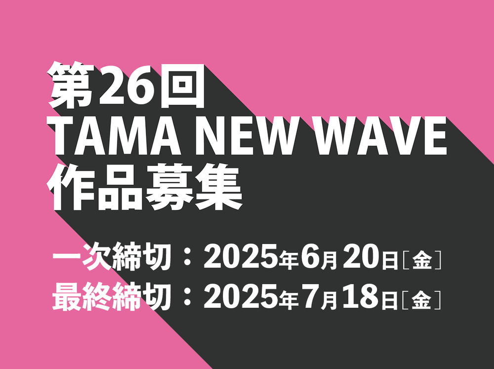 TAMA NEW WAVEでは今年11月に開催される第26回TAMA NEW WAVEに向けて、作品を募集いたします。応募締切は「早期割引」が適用となる一次締切が2025年6月20日[金]。最終締切が2025年7月18日[金]となります。皆さまからのたくさんのご応募をお待ちしております。