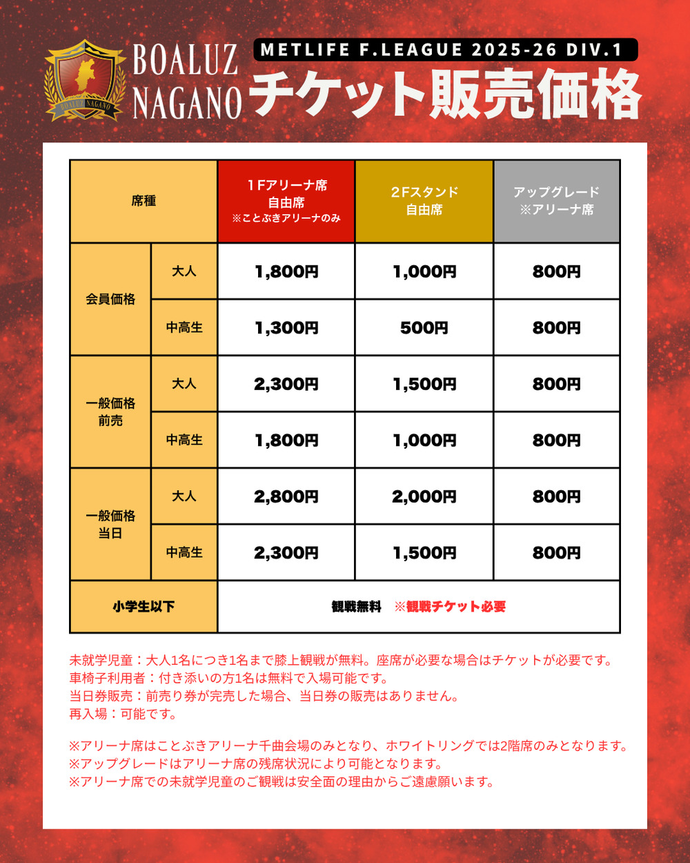 ボアルース長野のホームゲームでは、小学生以下の皆様は無料で試合観戦が楽しめます!