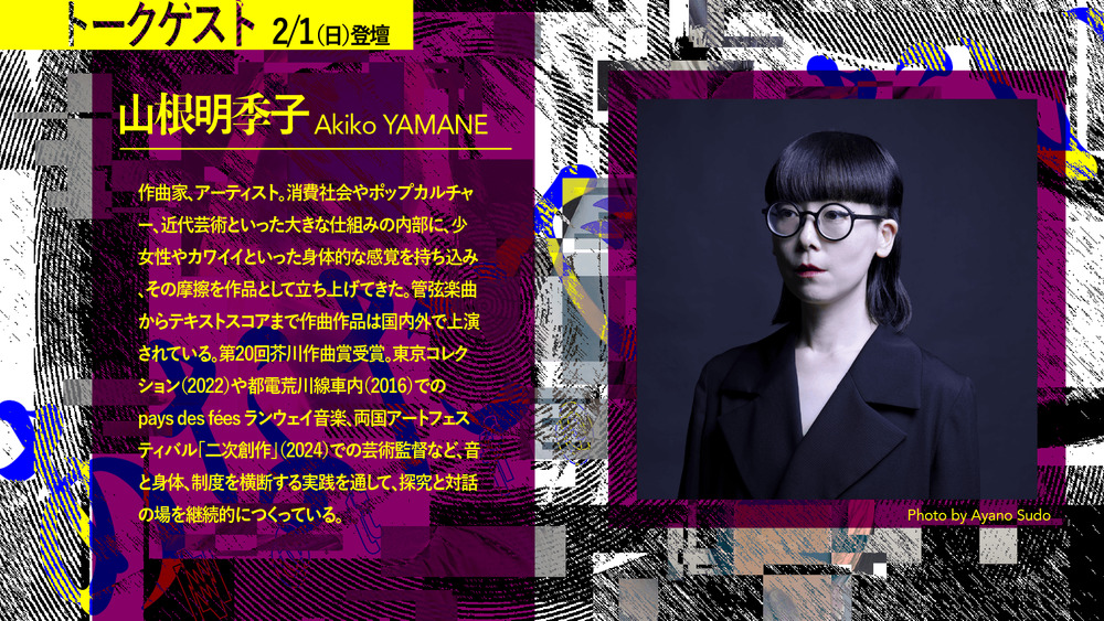 作曲家、アーティスト。消費社会やポップカルチャー、近代芸術といった大きな仕組みの内部に、少女性やカワイイといった身体的な感覚を持ち込み、その摩擦を作品として立ち上げてきた。管弦楽曲からテキストスコアまで作曲作品は国内外で上演されている。第20回芥川作曲賞受賞。東京コレクション(2022)や都電荒川線車内(2016)でのpays des fées ランウェイ音楽、両国アートフェスティバル「二次創作」(2024)での芸術監督など、音と身体、制度を横断する実践を通して、探究と対話の場を継続的につくっている。