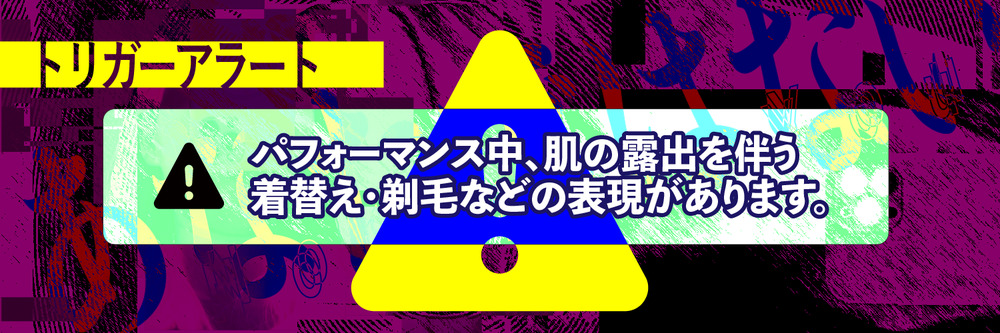 パフォーマンス中、肌の露出を伴う着替え・剃毛などの表現があります。
