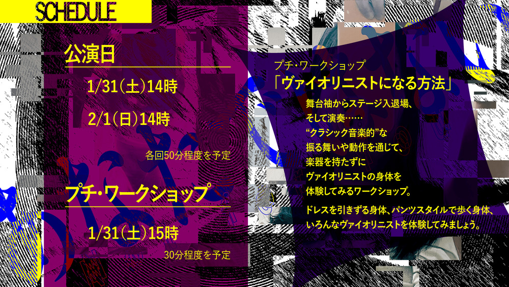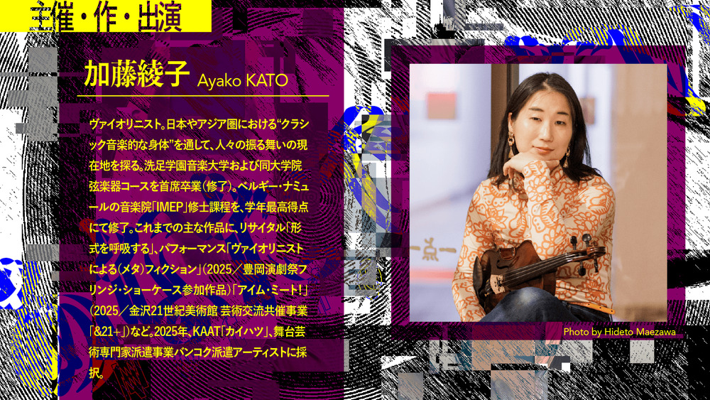 クラシック音楽をベースに振る舞い続けてきたヴァイオリニスト・加藤綾子による新作レクチャーパフォーマンス。