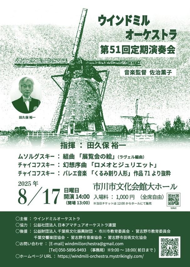 第1歩目となる第51回定期演奏会は、ウインドミルとしては初演となる「展覧会の絵」をメインに据え、新たな1歩に相応しいプログラムとなっております。