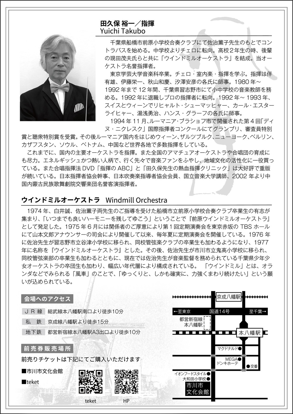 指揮は、昨年「エグモント」序曲を振っていただいた、初代団長の田久保裕一氏を迎えてお送りいたします。