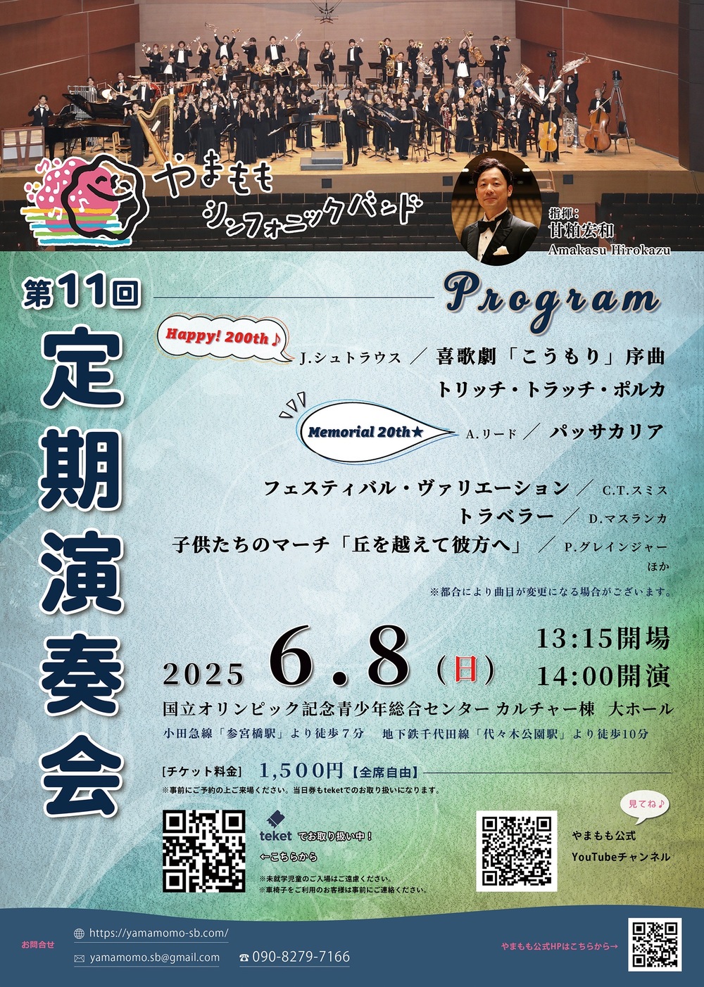 第1部では生誕200年と没後20年の二人のアニバーサリー作曲家であるヨハン・シュトラウス2世とアルフレッド・リード博士にスポットを当て、第2部では“鬼才たちの饗宴”と銘打ち、D.マスランカ、P.グレインジャー、C.T.スミスの名曲たちと、俊才 冷水乃栄流氏の話題作「脆性ノスタルジア」を取り上げます。
