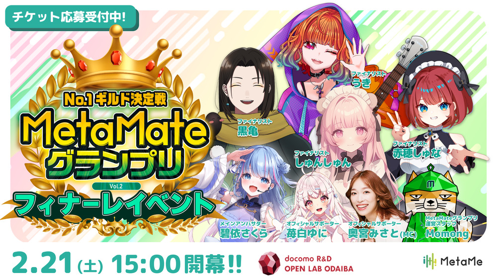 NTTドコモが開発したメタバース「MetaMe(メタミー)」で開催中のグランプリイベント「MetaMate(メタメイト)グランプリ Vol.2」がいよいよフィナーレ🏆