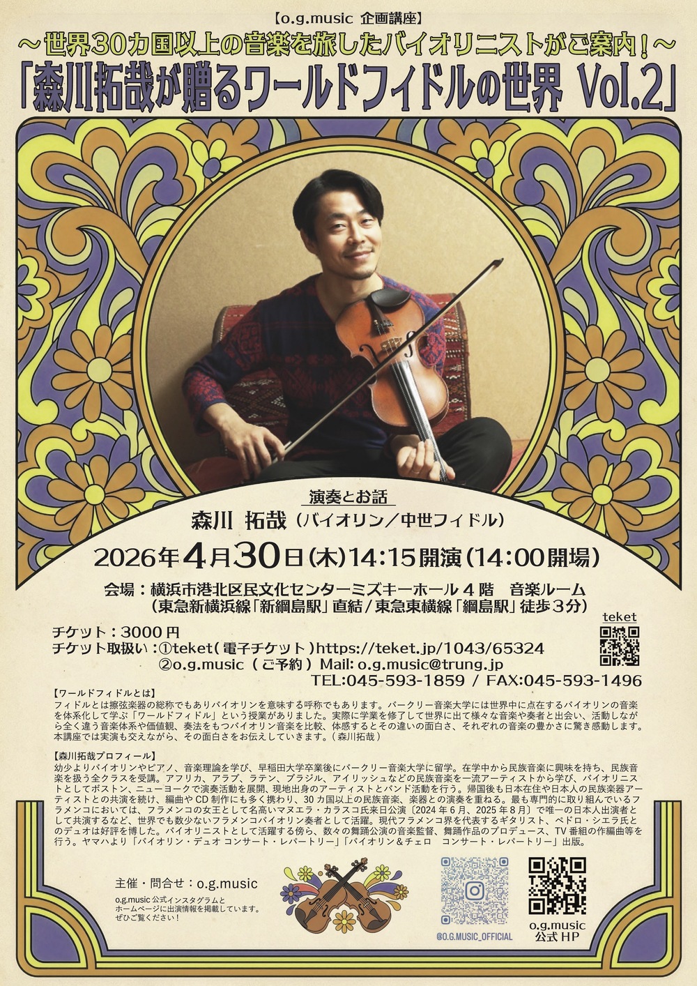 演奏とお話:森川拓哉(バイオリン/中世フィドル)