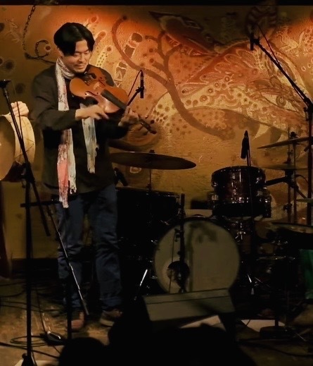 幼少よりバイオリンやピアノ、音楽理論を学び、早稲田大学卒業後にバークリー音楽大学に留学。在学中から民族音楽に興味を持ち、民族音楽を扱う全クラスを受講。アフリカ、アラブ、ラテン、ブラジル、アイリッシュなどの民族音楽を一流アーティストから学び、バイオリニストとしてボストン、ニューヨークで演奏活動を展開、現地出身のアーティストとバンド活動を行う。
