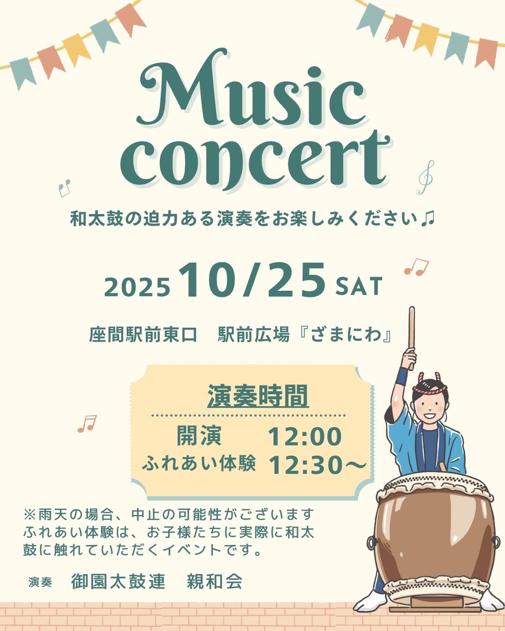 ・和太鼓の演奏 12時からざまにわにて(予定)