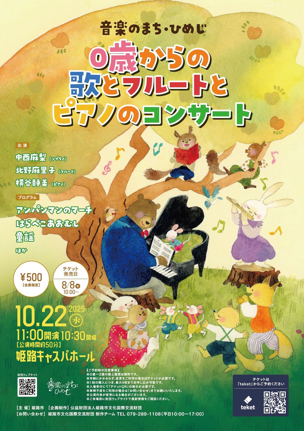 童謡・クラシック・手あそび歌など、0歳のお子様から親子一緒に楽しんでいただけるコンサート。