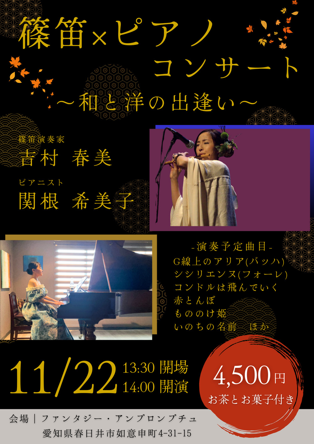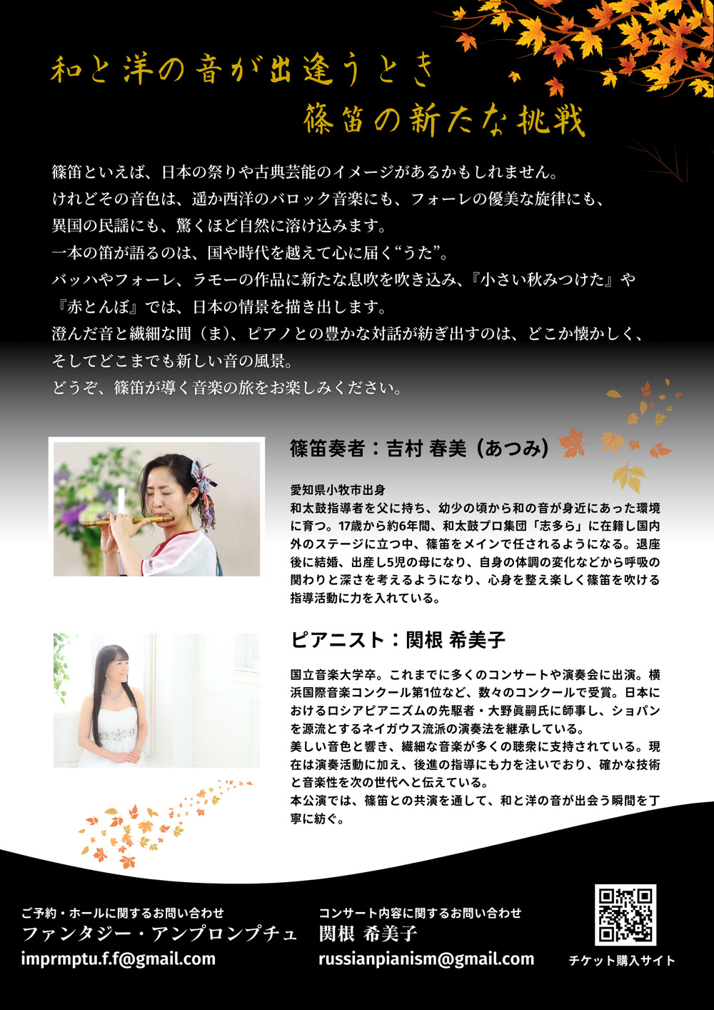 本公演では、篠笛との共演を通して、和と洋の音が出会う瞬間を丁寧に紡ぐ。
