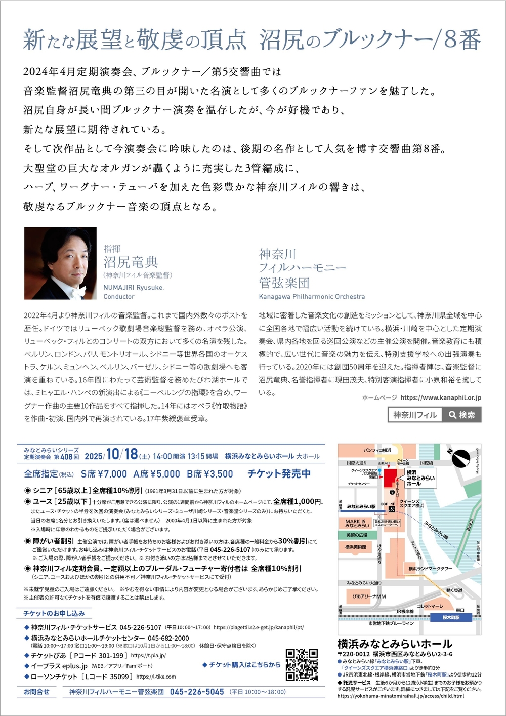 その他のお問い合わせ先:神奈川フィル・チケットサービス (平日10時~17時)