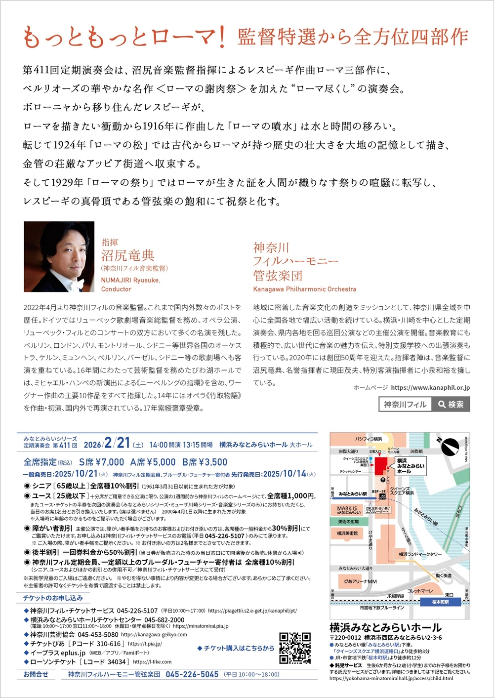 その他のお問い合わせ先:神奈川フィル・チケットサービス (平日10時~17時)