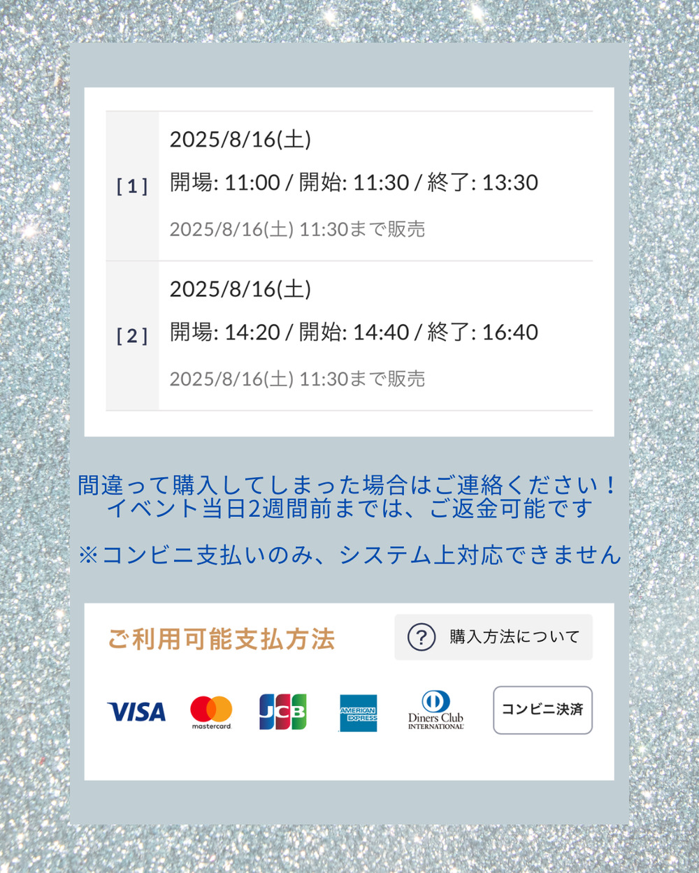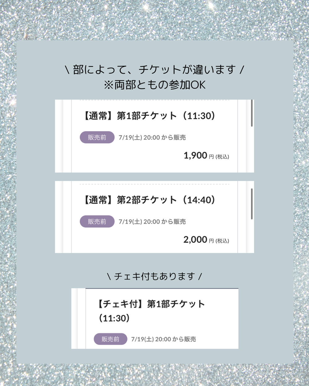 ・通常チケットにはチェキは付いていません、予めチェキを必要とされる方は【チェキ付】をお買い求めになるか、