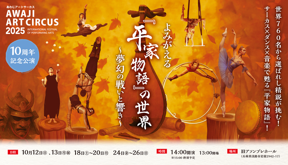 本公演では、『平家物語』にインスパイアされた幻想的な世界を、サーカス、ダンス、音楽、映像など多彩なパフォーマンスで描き出します。アクロバットが舞う波のように、ジャグリングが光の矢のように、身体の躍動が戦の記憶を呼び覚ます。