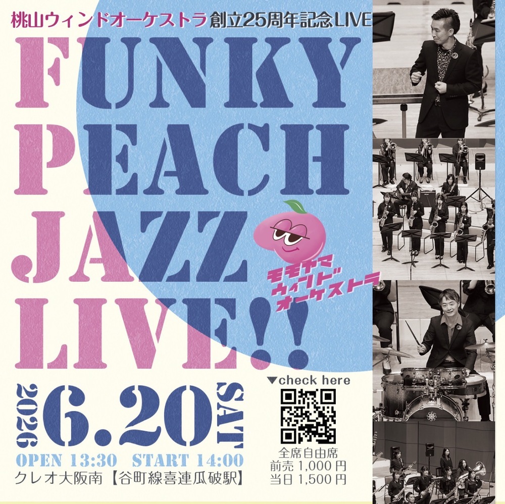 「Funky Peach Jazz Live!!」と題し、全編JAZZ&POPSのアツいステージをご用意しております。