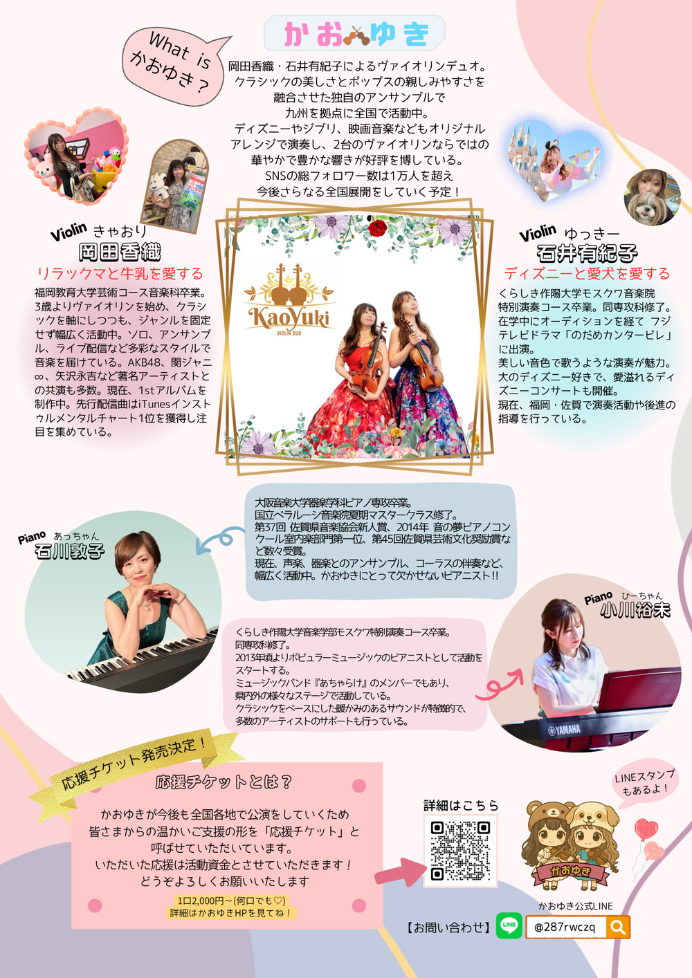 福岡を拠点に活動するバイオリンデュオ「かおゆき」と、お馴染みのピアニスト“あっちゃん”がついに大阪へ🎻🎹🎻