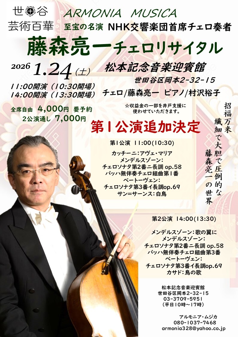NHK交響楽団首席チェリスト藤森亮一チェロ・リサイタル