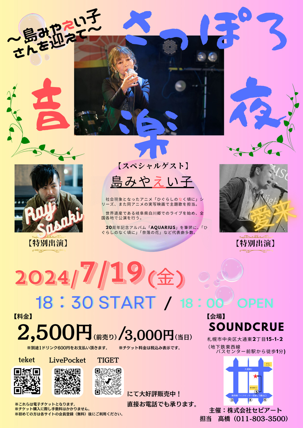 「ひぐらしのなく頃に」シリーズの主題歌を歌っている島みやえい子さんを迎え、地元札幌で活動するアーティストとともに心ゆくまでお楽しみ頂きます。
