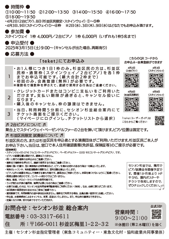 その他のお問い合わせ先:03-3317-6611(セシオン杉並総合案内)