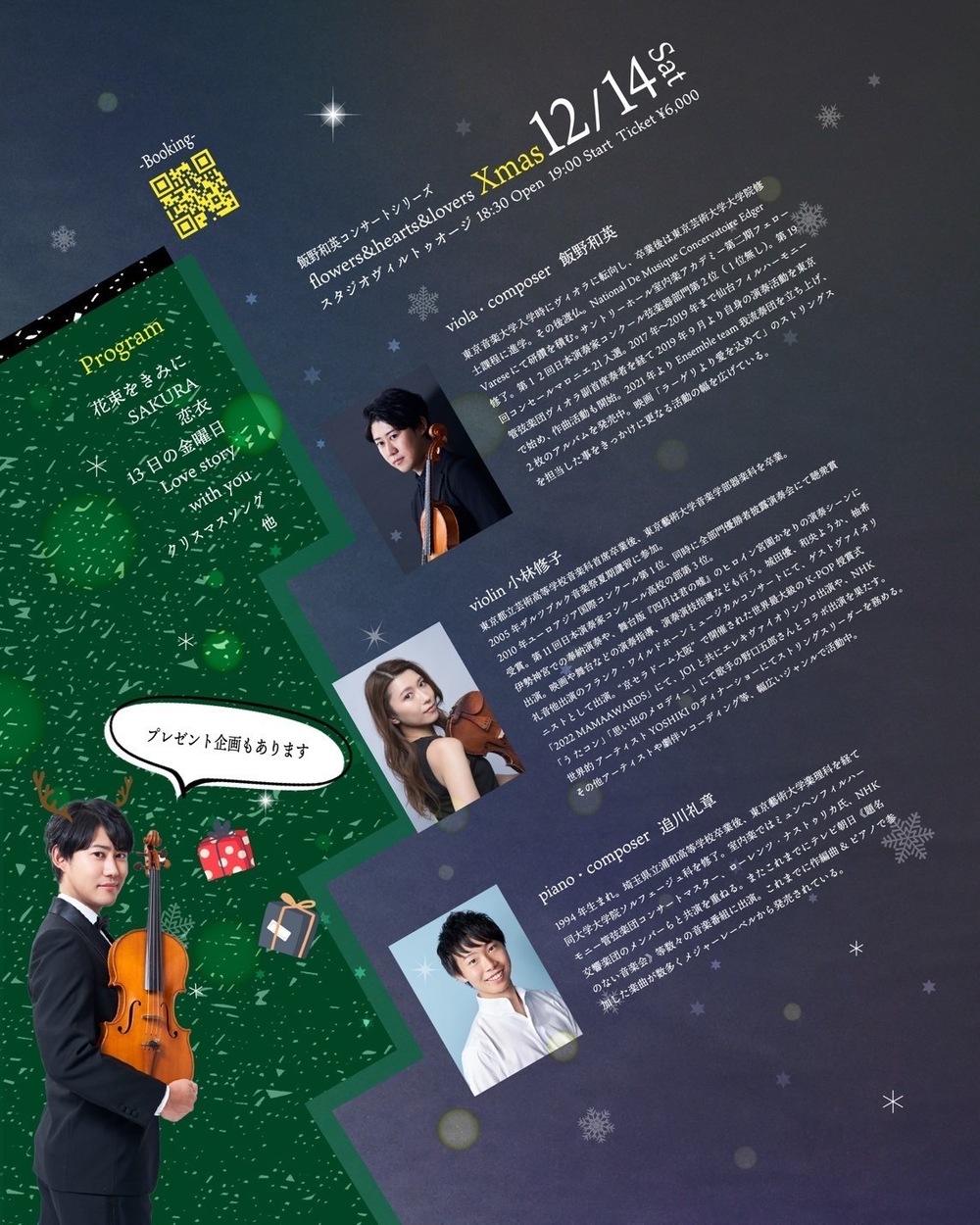 1994年生まれ。埼玉県立浦和高等学校卒業後、東京藝術大学楽理科を経て同大学大学院ソルフェージュ科を修了。室内楽ではミュンヘンフィルハーモニー管弦楽団コンサートマスター、ローレンツ・ナストゥリカ氏、NHK交響楽団のメンバーらと共演を重ねる。またこれまでにテレビ朝日《題名のない音楽会》等数々の音楽番組に出演。これまでに作編曲&ピアノで参加した楽曲が数多くメジャーレーベルから発売されている。