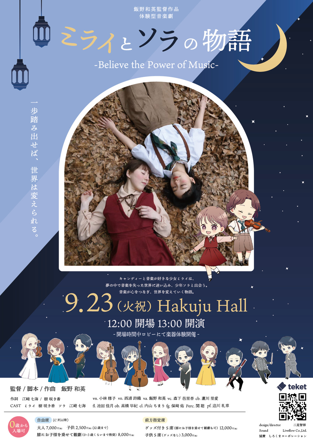 キャンディーと音楽が好きな少女ミライは、夢の中で音楽を失った世界に迷い込み、少年ソラと出会う。かつて音楽に満ちていたその世界を、2人は会場のみんなと力を合わせて音楽の力で蘇らせていく。夢から目覚めたミライは、ソラとの出会いを胸に、勇気を持って前に進む決意をする。