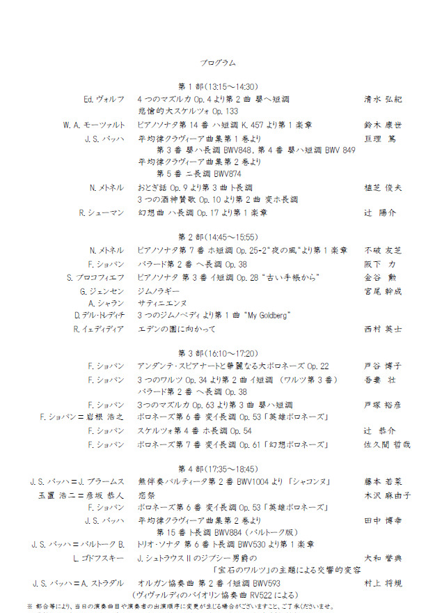 ※ 出演者の都合により曲目変更となる場合がありますこと、ご了承ください。