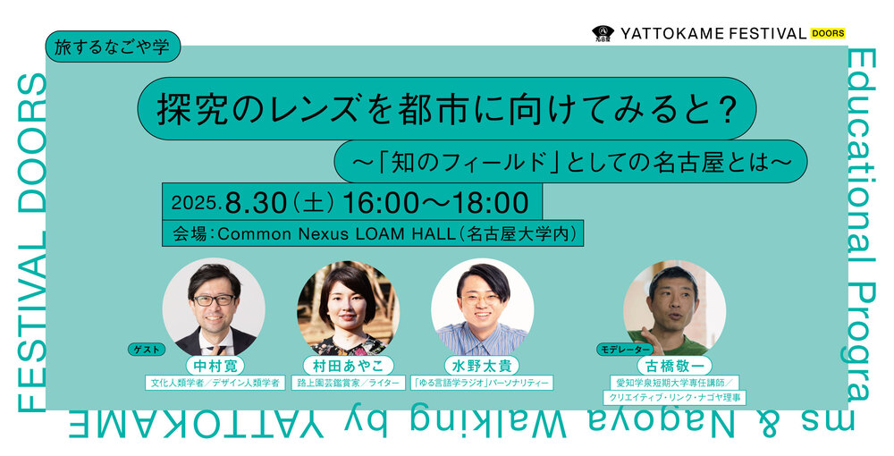 これまでの歩みを振り返ると、「やっとかめ文化祭/やっとかめ文化祭DOORS」では名古屋という都市を舞台に、純粋な「もっと知りたい、より深く掘り下げたい=探究心」をもとに活動してきたと感じます。この活動は人文科学的な、あるいはリベラルアーツ的な営みともいえるでしょう。