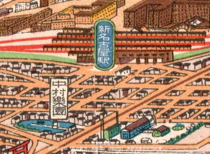 写真提供©吉田初三郎『名古屋市:鳥瞰圖』(1937年)名古屋汎太平洋平和博覧會事務局、東海遊里史研究会蔵