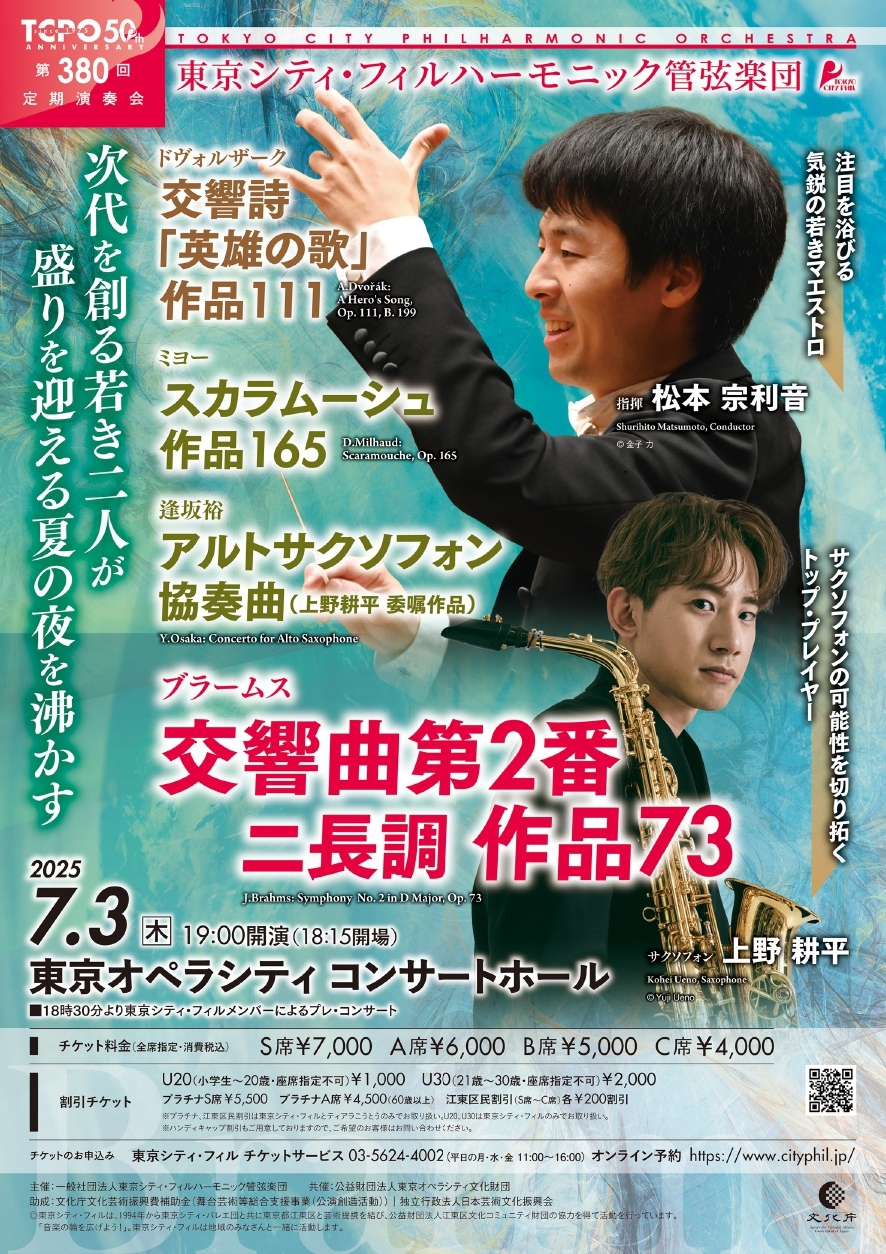 実力・人気ともに若手トップのサクソフォン奏者 上野耕平が定期に初登場!