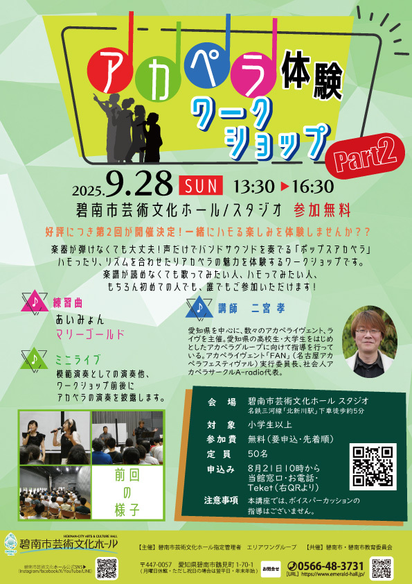ワークショップ前後にはアカペラグループによる演奏も披露致します。