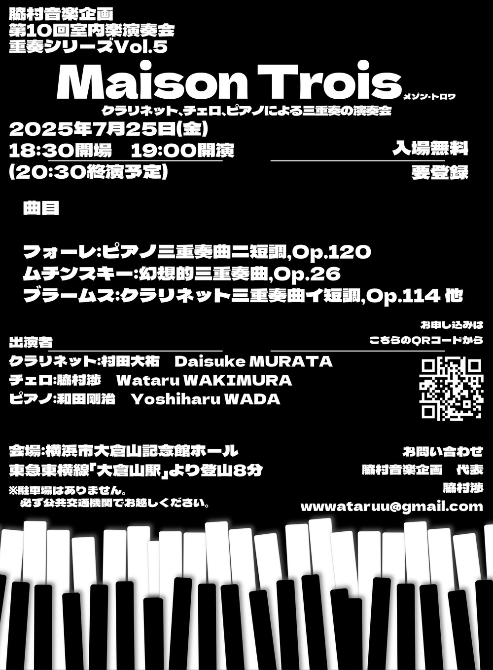 2024年3月に始動した脇村音楽企画室内楽演奏会は、今回で10回を迎えます。