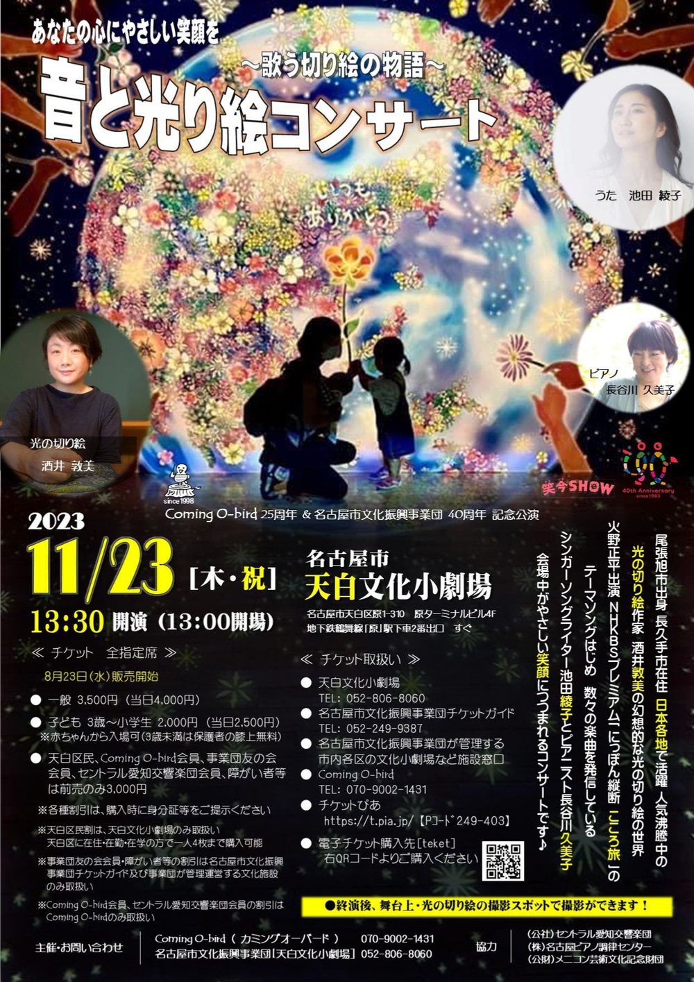 酒井敦美(光の切り絵)、池田綾子(うた)、長谷川久美子(ピアノ)