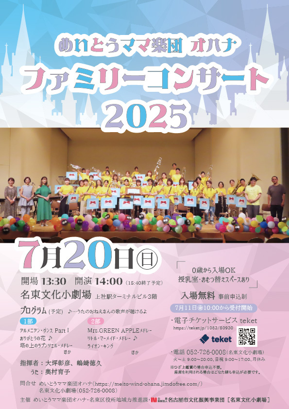 めいとうママ楽団オハナは2008年に結成したママさん中心の吹奏楽団です。主に名東区で活動中!