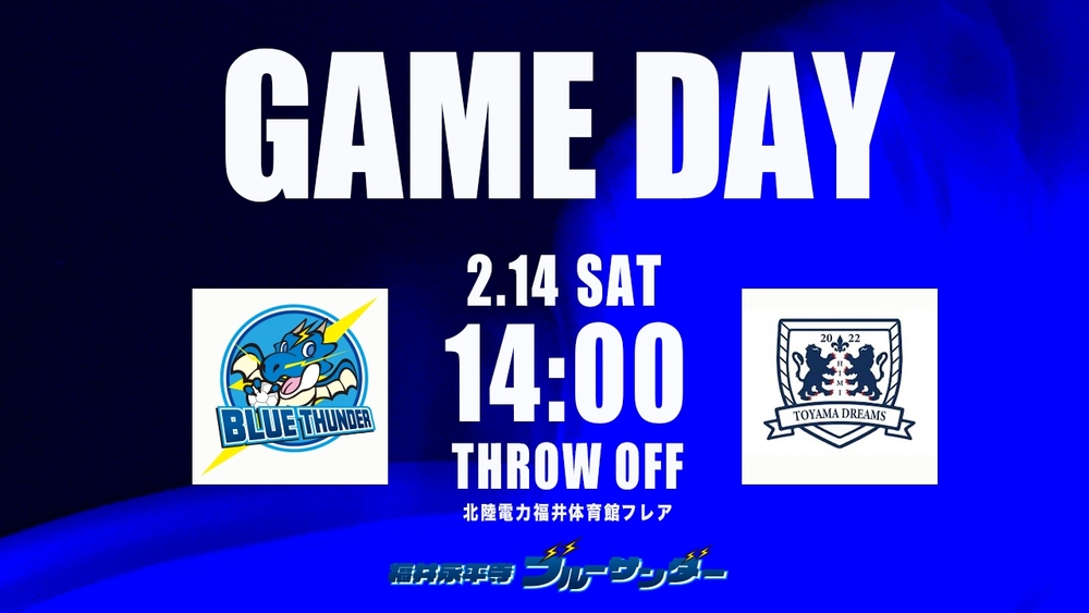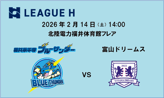14:00 試合開始 福井永平寺ブルーサンダー VS 富山ドリームス