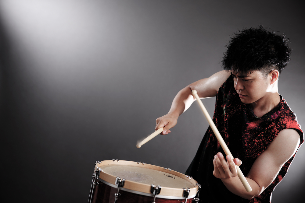スネアドラムからマリンバ、ティンパニ、シンバル……と最大9種の打楽器を叩き分けるステージにご期待を。