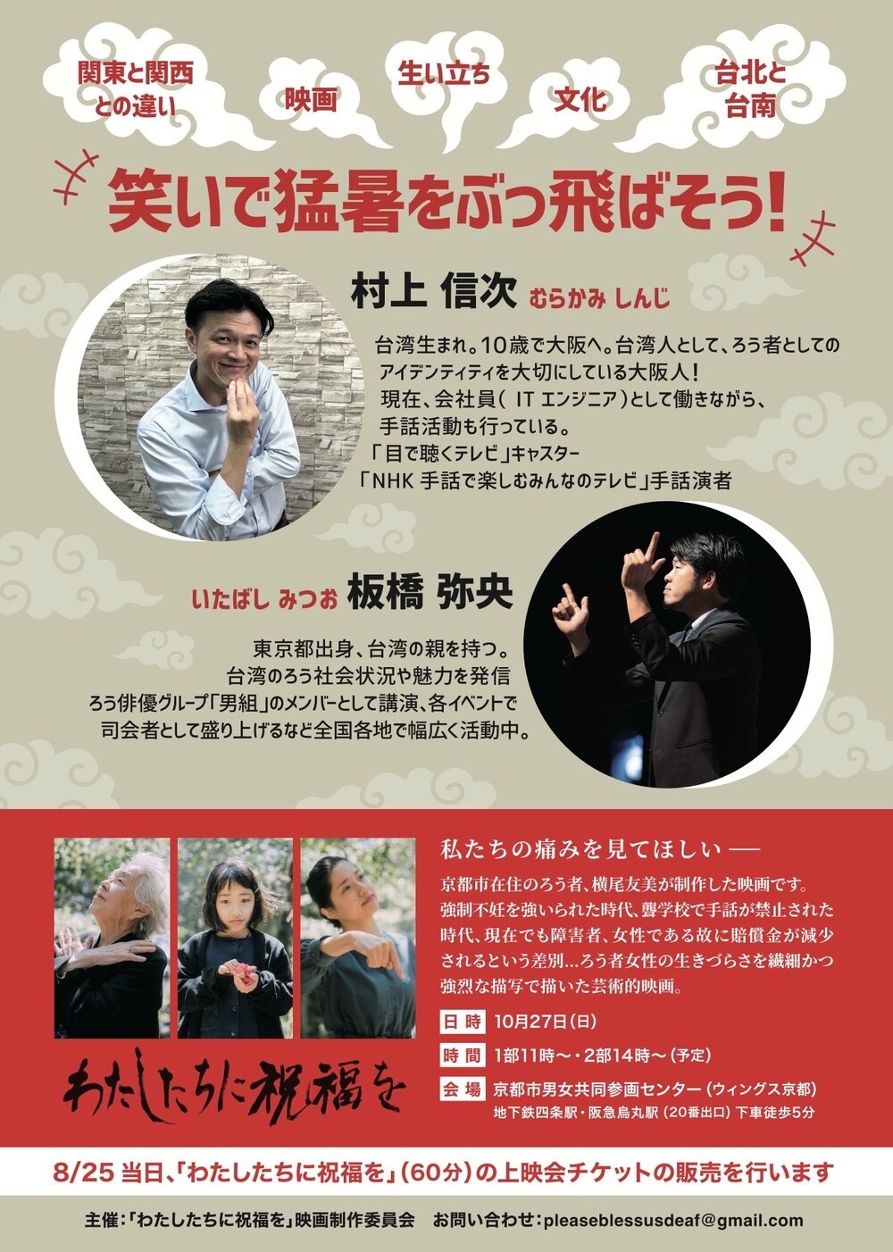 二人の生い立ち、台湾から映画までとことん語ります。横尾友美が制作した「わたしたちに祝福を」映画(60分)、10/27(日)京都での先行上映会のチケットを当日販売します。