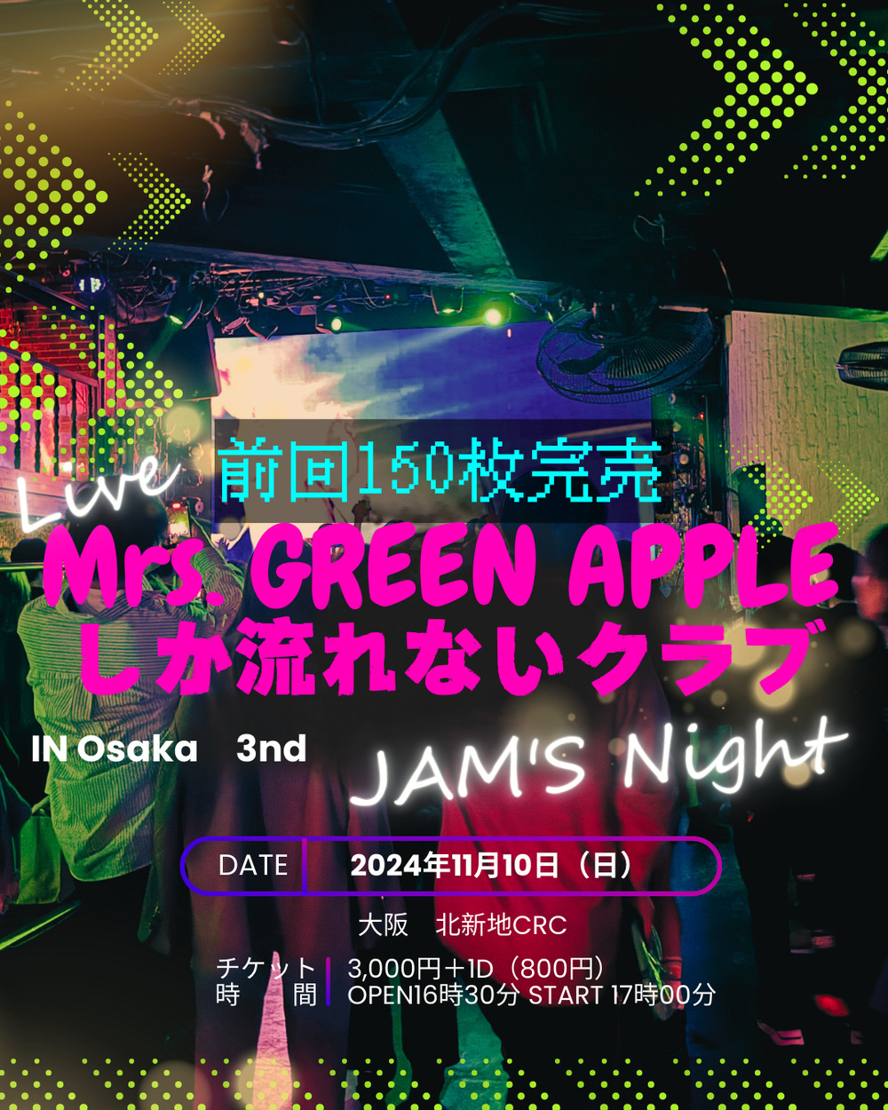 大阪最高峰のクラブを完全貸切して、Mrs. GREEN APPLEしか流れないクラブイベントを開催します!!