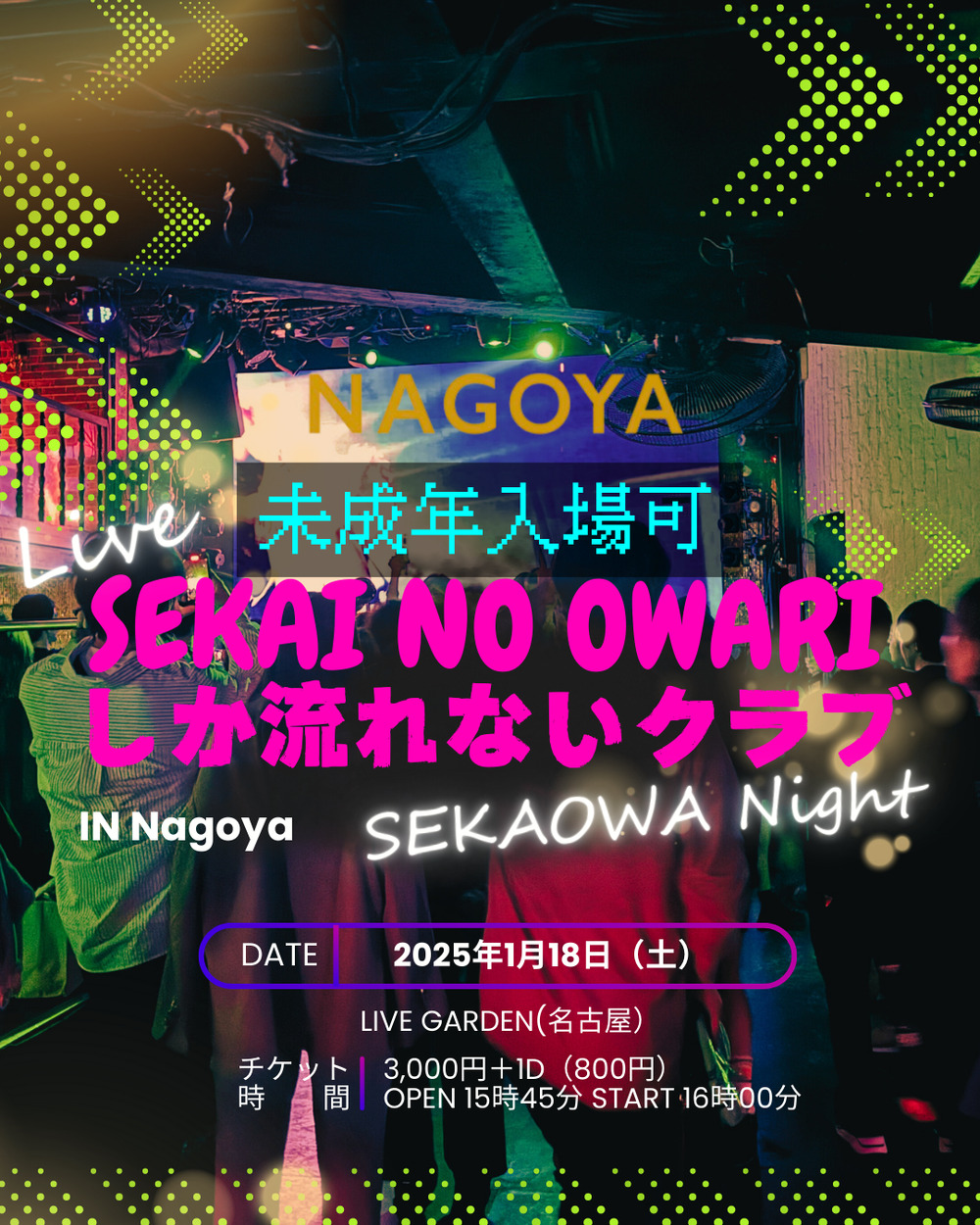 名古屋地区最高峰のクラブを完全貸切して、SEKAI NO OWARIしか流れないクラブイベントを開催します!!