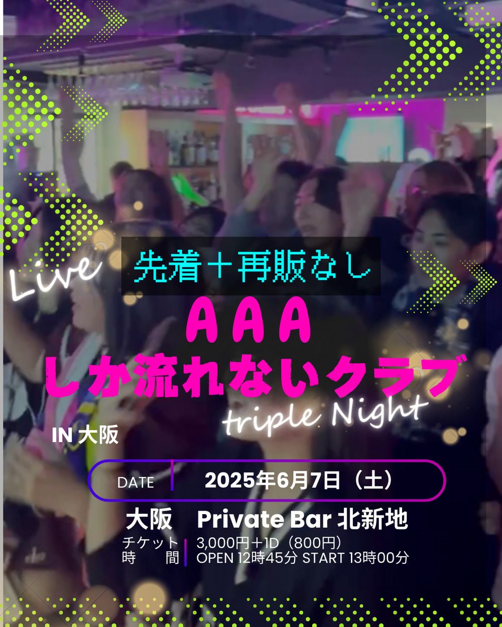 AAA(トリプル・エー)しか流れないクラブが大阪に登場!!