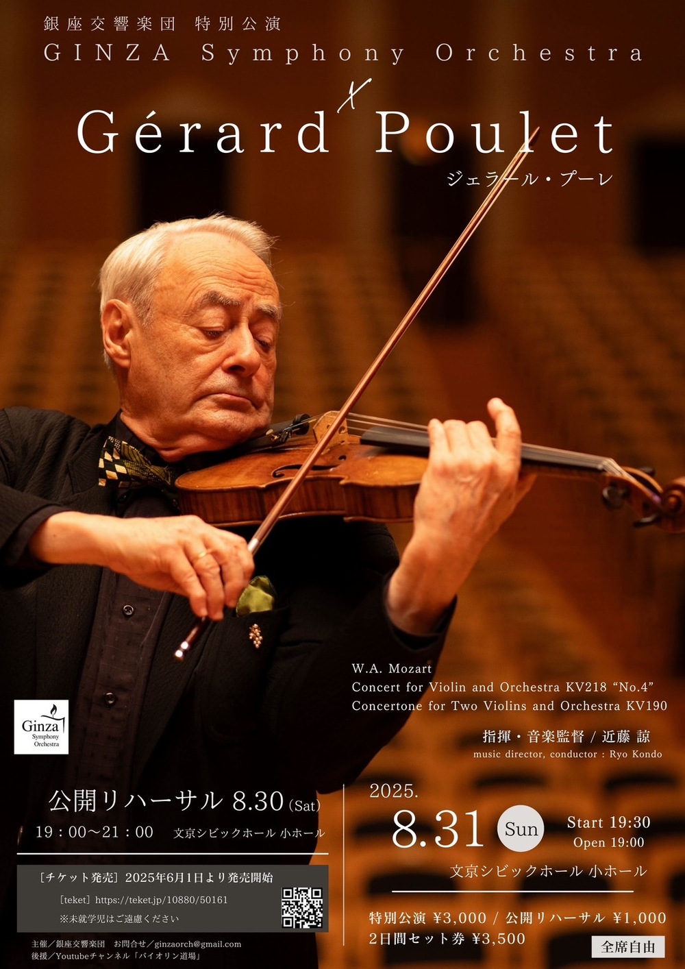2024年に創立し、モーツァルトやハイドンを集中的に取り組んでいる銀座交響楽団はこの度、ジェラール・プーレと念願の共演を果たします。