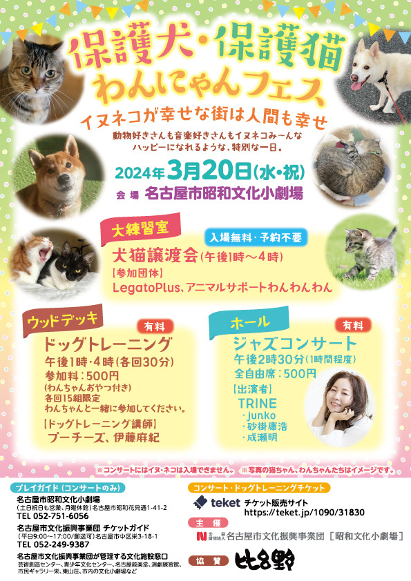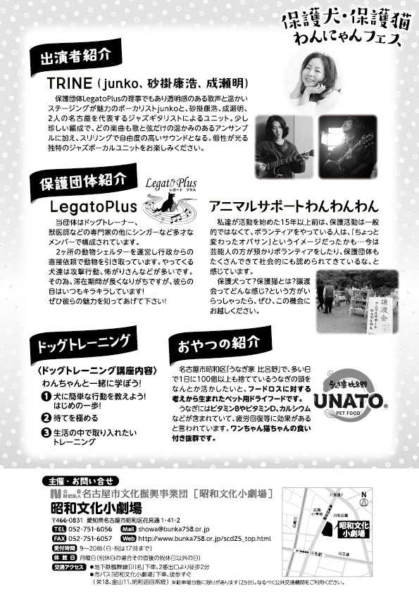 昭和文化小劇場全体を使って開催される、わんちゃんとねこちゃんと人間が楽しめる「わんにゃんフェス」です。